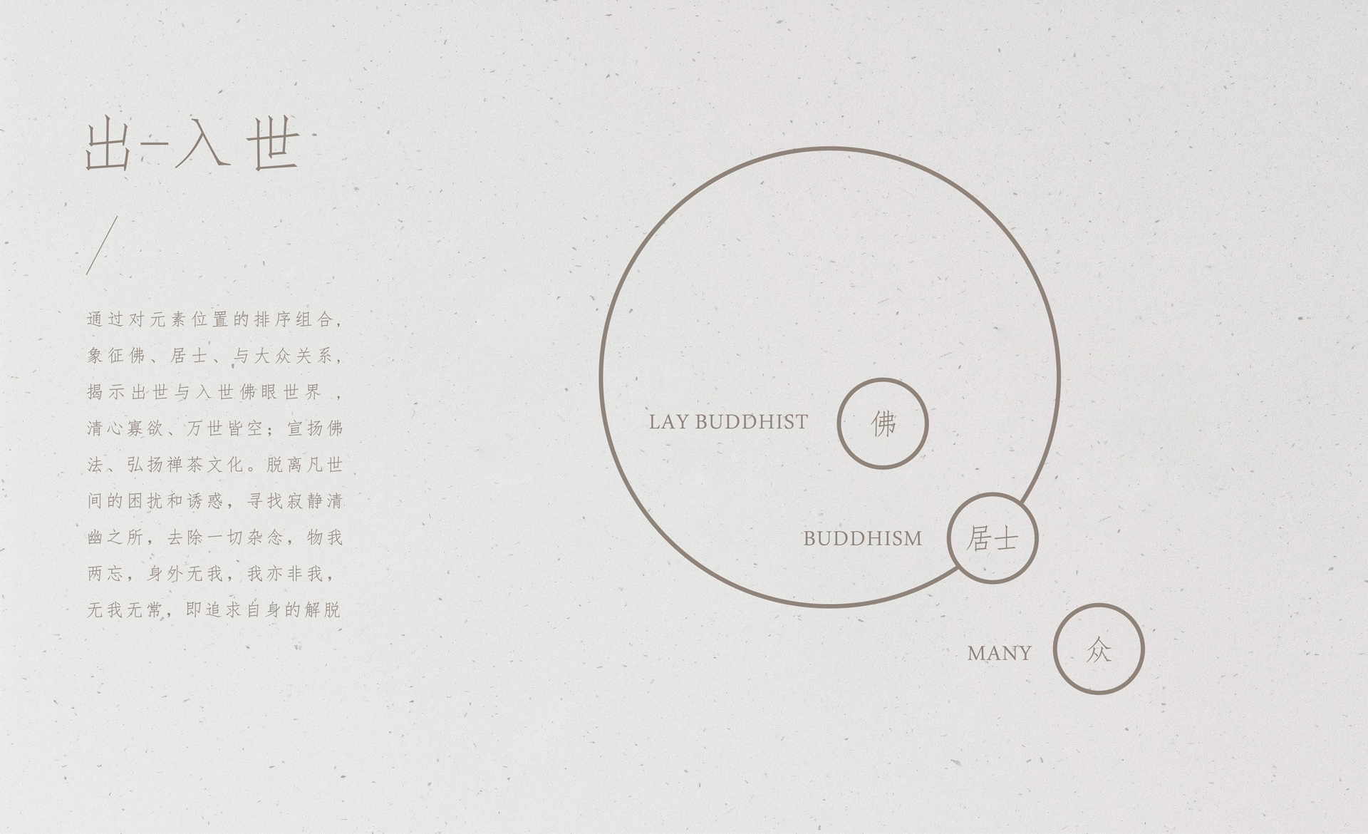 和與德通過走訪調研,提煉出出世與入世、禪茶一味等元素,為上海禪茶學會設計品牌LOGO,體現禪與茶兩種文化的相互滲透相互影響,弘揚禪茶文化,茶能謂道,禪也謂境界;通過對元素位置的排序組合,揭示出世與入世佛眼世界,清心寡欲、萬世皆空,體現出脫離凡世間的困擾和誘惑,尋找寂靜清幽之所,去除一切雜念,物我兩忘,身外無我,我亦非我,無我無常的境界。