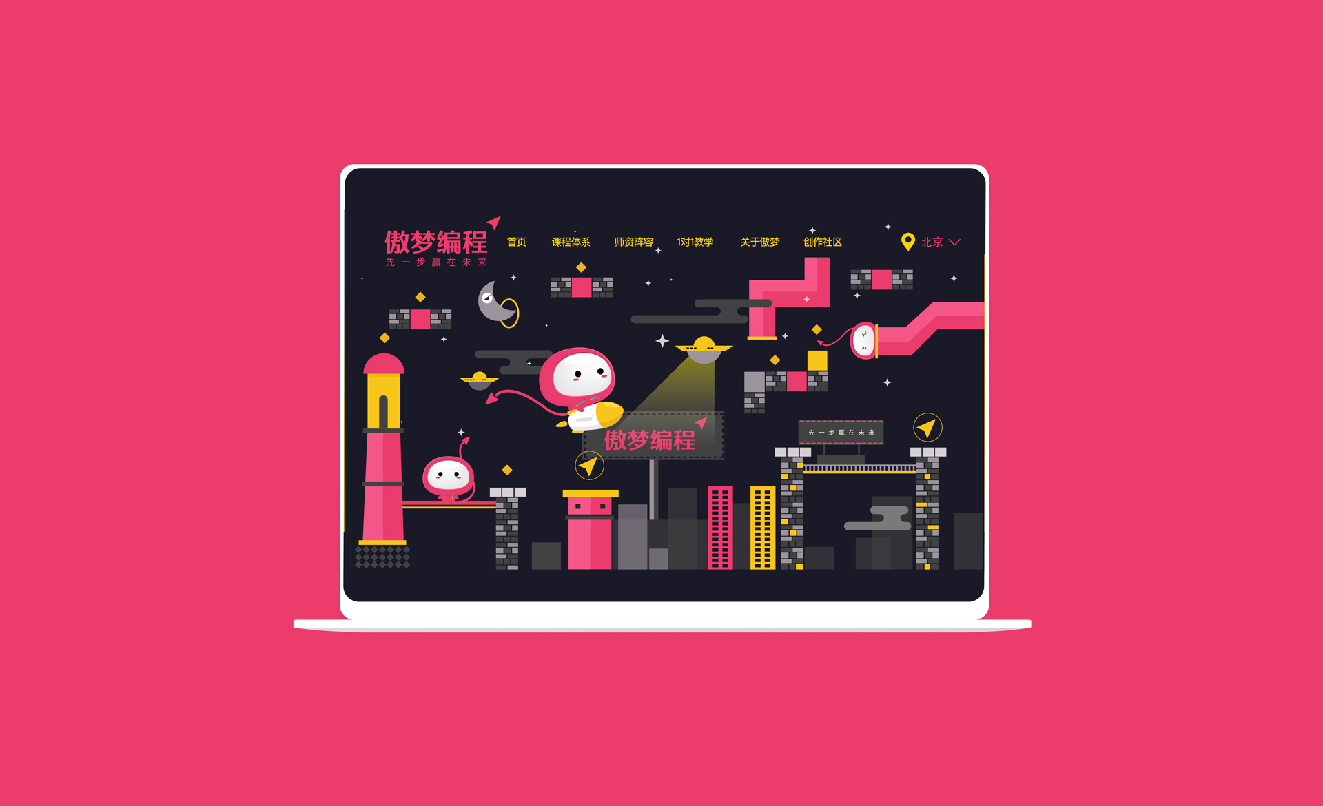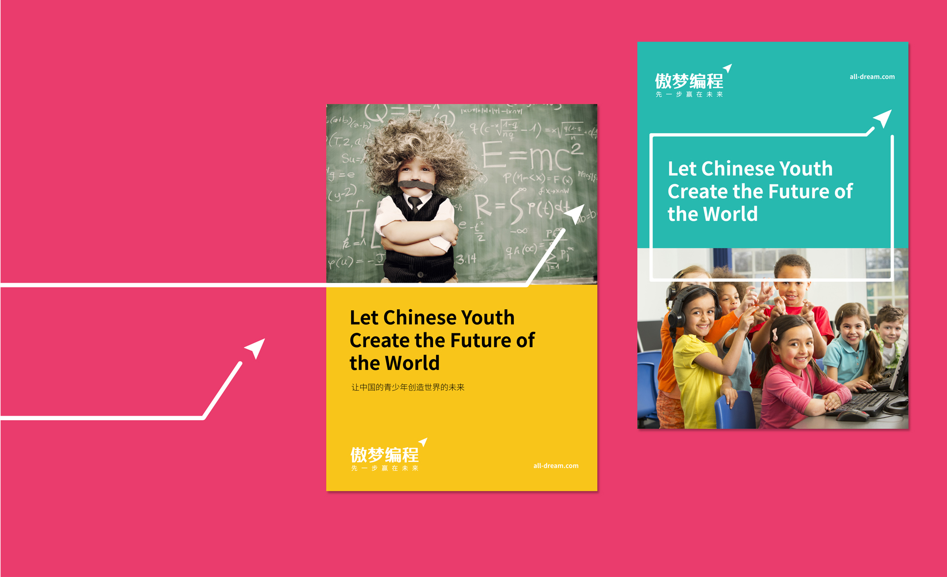 和與德與傲夢編程協(xié)作, 回歸教育本質(zhì),提出“中國創(chuàng)新型編程素質(zhì)教育引領(lǐng)者”的品牌定位,打造“未來科技企業(yè)家”的品牌形象;同時站在家長的角度思考,提出了“先一步,贏在為未來”的品牌口號.同時, 我們?yōu)槠涠ㄖ频奶摂M卡通形象為傲夢編程的更具感染力的品牌體驗打下基礎(chǔ)。
