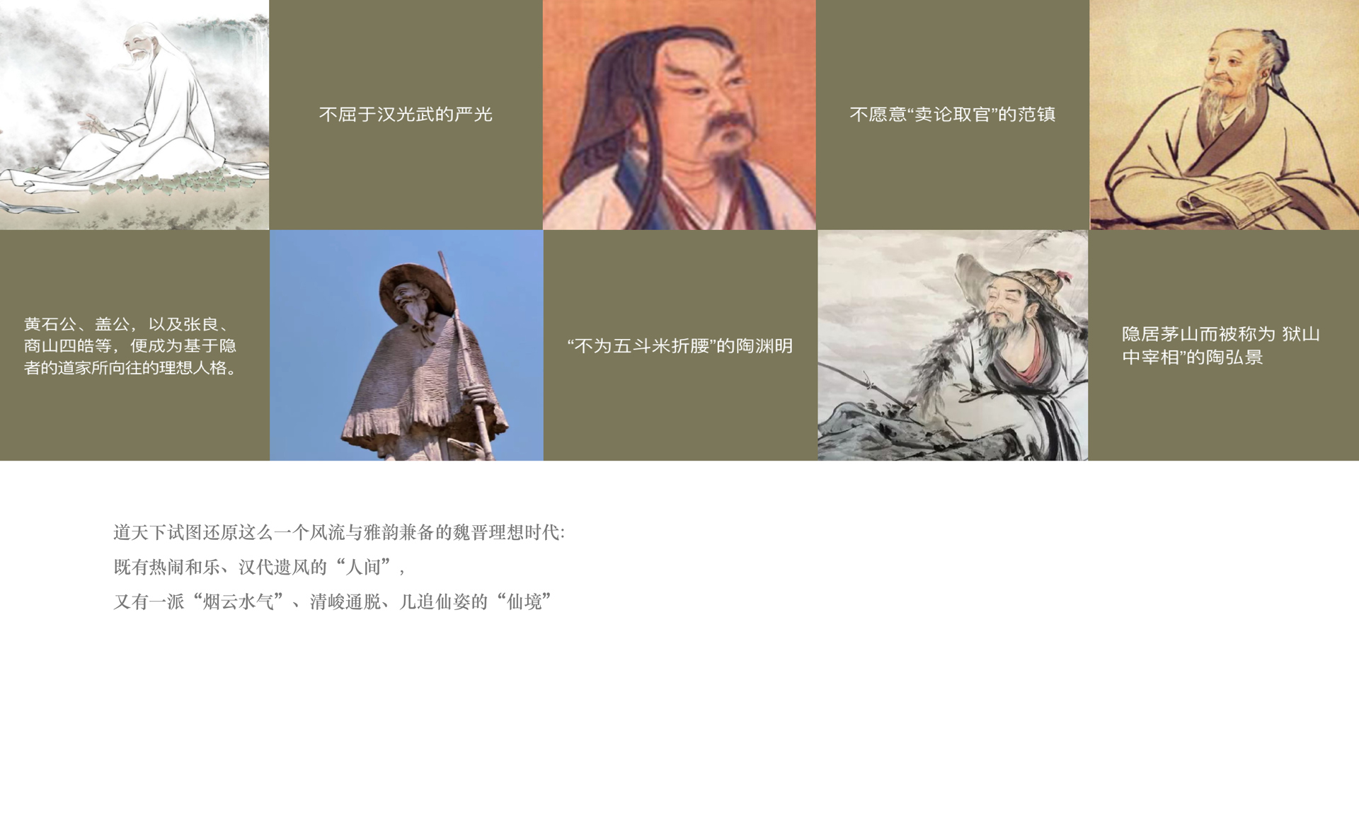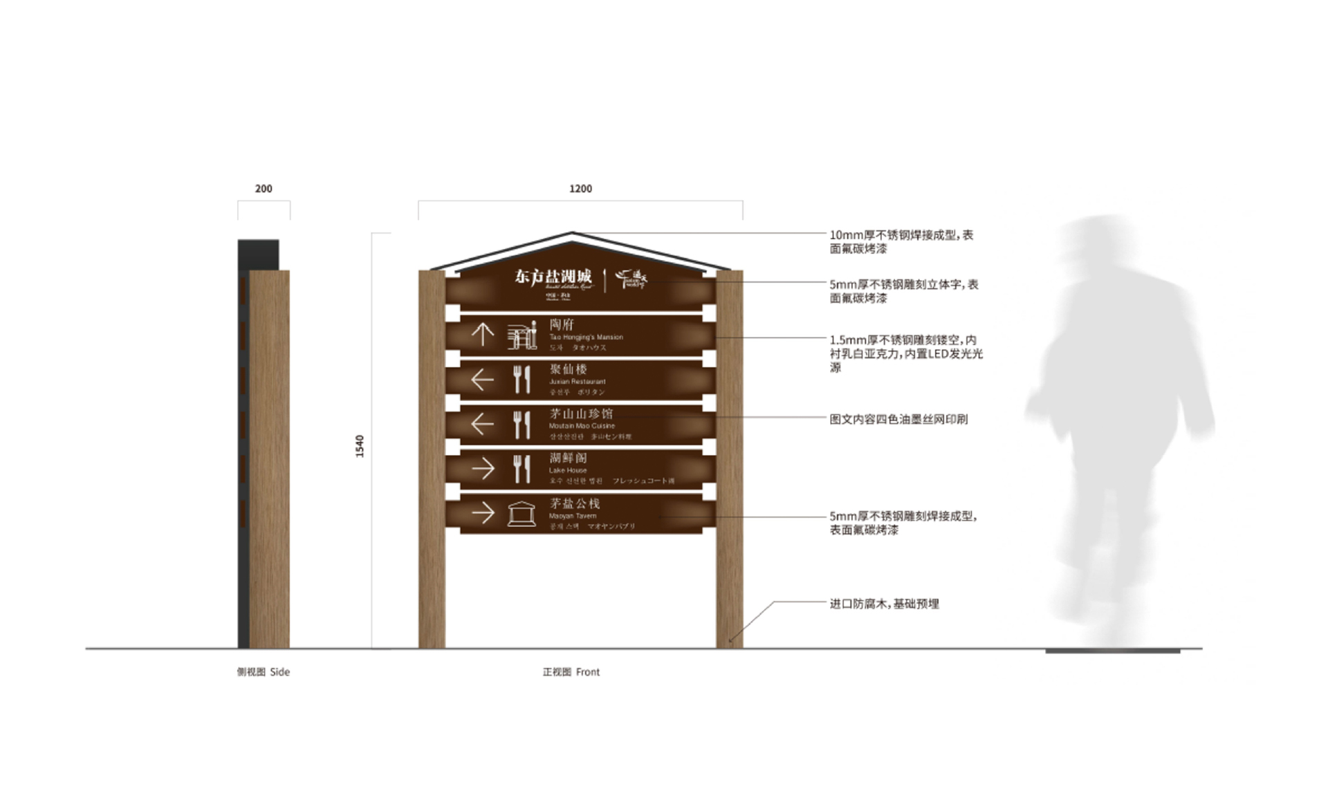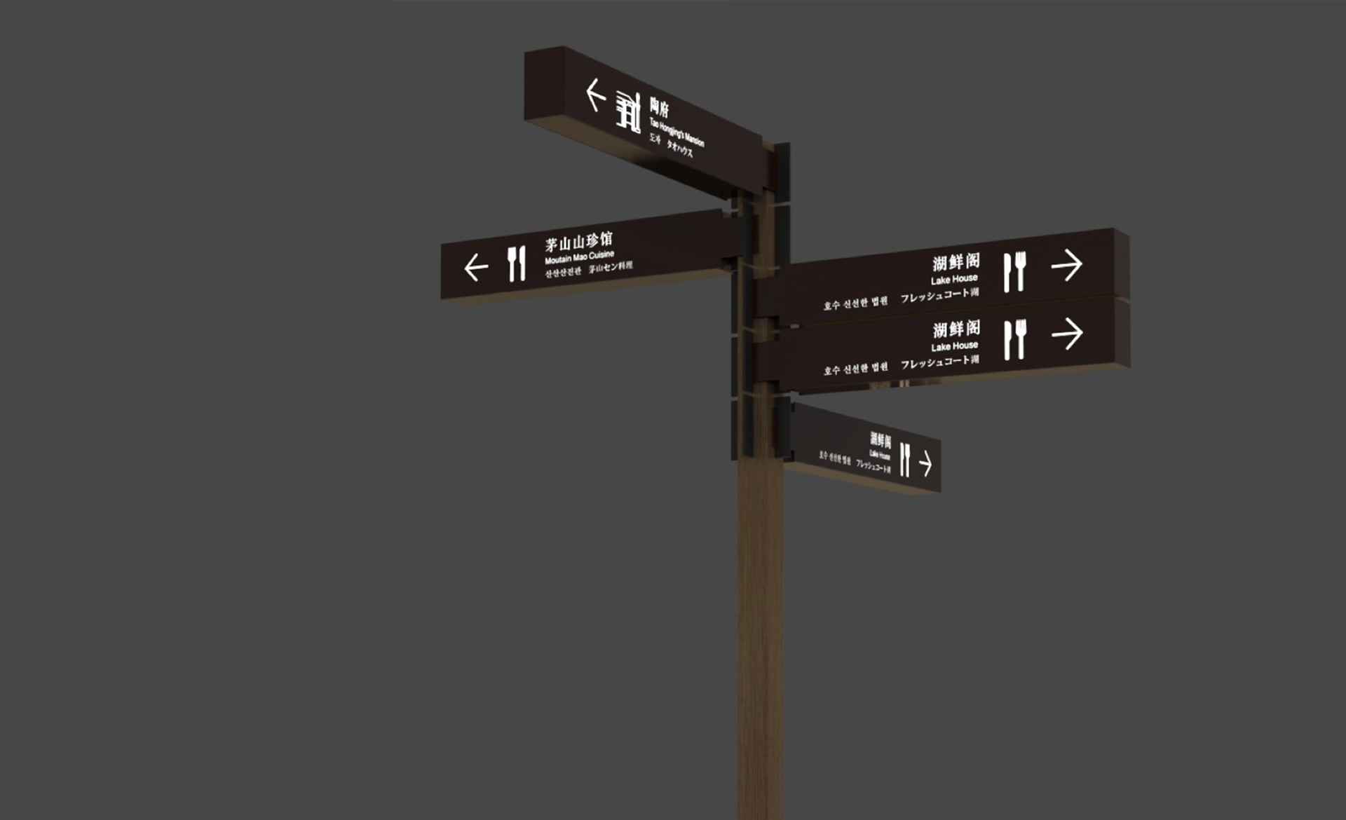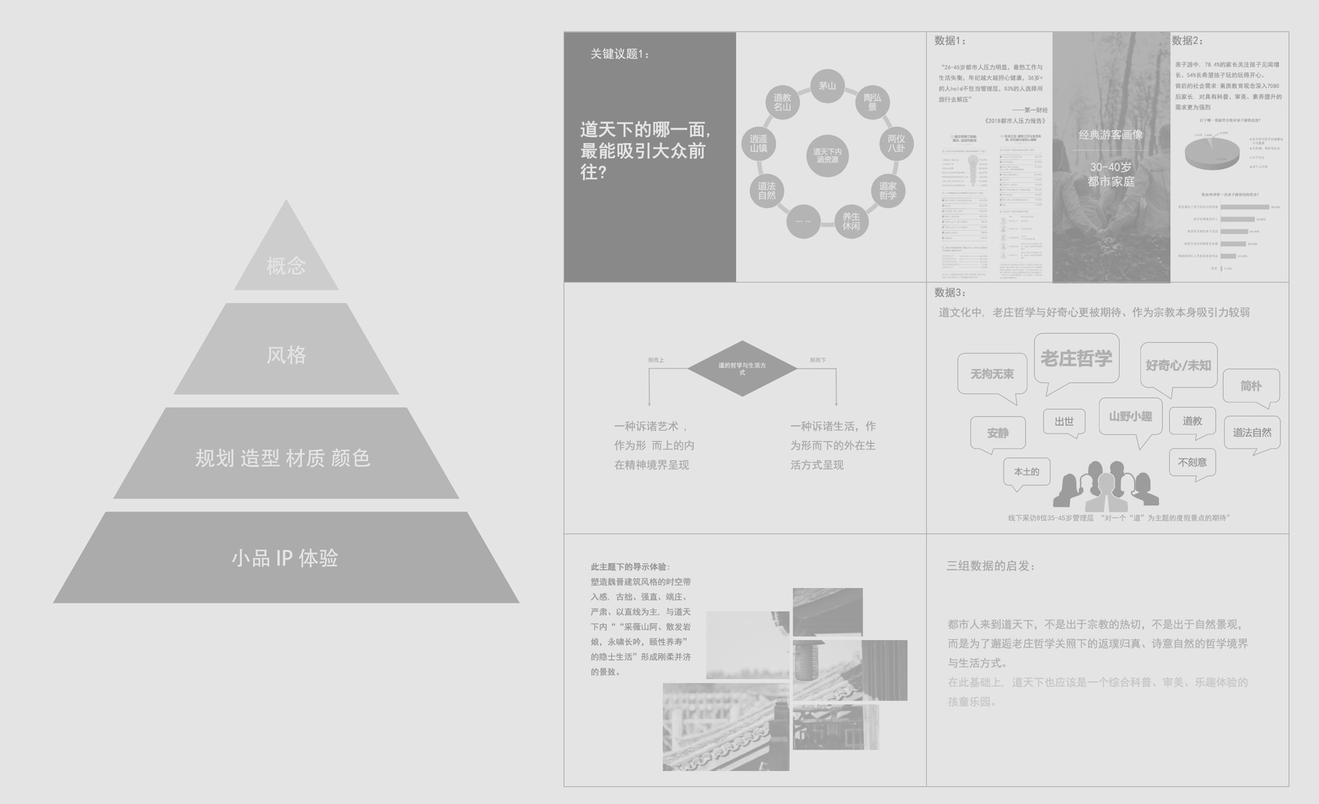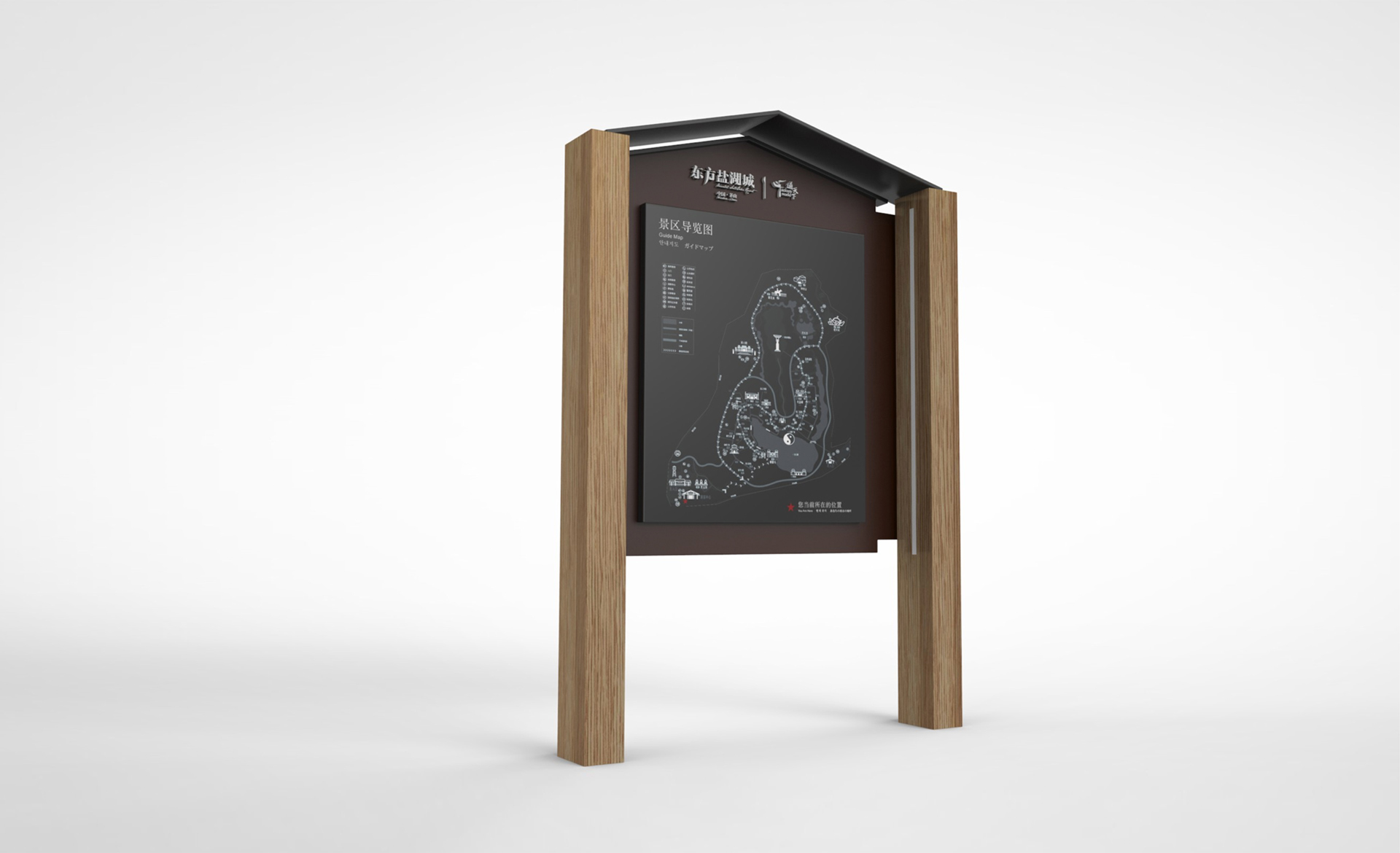 和與德通過多次實地勘察與會議調(diào)研,分析診斷原有導(dǎo)視系統(tǒng)存在的“硬傷”(游客看不見、看不懂、找不到等問題)并提出了針對性的解決方案;以標準性、可達性、有效性等設(shè)計原則為基礎(chǔ),重新科學(xué)規(guī)劃了景區(qū)交通動線、合理劃分了各功能布局并有效設(shè)置了各類標牌點位;深挖景區(qū)核心“道教文化“基因,剖析魏晉風(fēng)格的建筑特點,最終提煉出”應(yīng)物“的設(shè)計概念,巧妙貫穿于整體導(dǎo)視系統(tǒng)設(shè)計中。