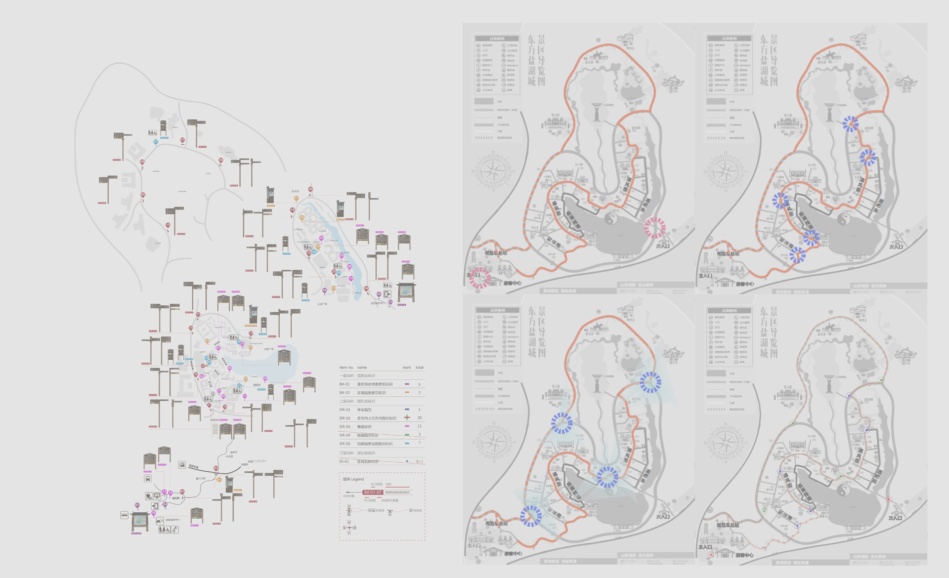 東方鹽湖城是由龍城旅游控股集團投資建設(shè),位于中國道家圣地金壇茅山,以茅山特有的“山、水、茶、 鹽、藥、泉”六大資源及道文化為依托,打造國內(nèi)首個集休閑度假、文化展示、互動體驗 等多主題的閑養(yǎng)度假區(qū)。對外開放的“道天下·逍遙山鎮(zhèn)“,占地1000畝,是一個集合特色酒店、主題演繹、 娛樂體驗、文化博展、美食商業(yè)等多種業(yè)態(tài)的旅游度假目的地和勞模(職工)療修養(yǎng)基地。為爭創(chuàng)5A級景區(qū)并解決景區(qū)原有導(dǎo)視系統(tǒng)功能不足等問題,東方鹽湖城旅游發(fā)展公司啟動了道天下景區(qū)導(dǎo)視系統(tǒng)設(shè)計的工作。