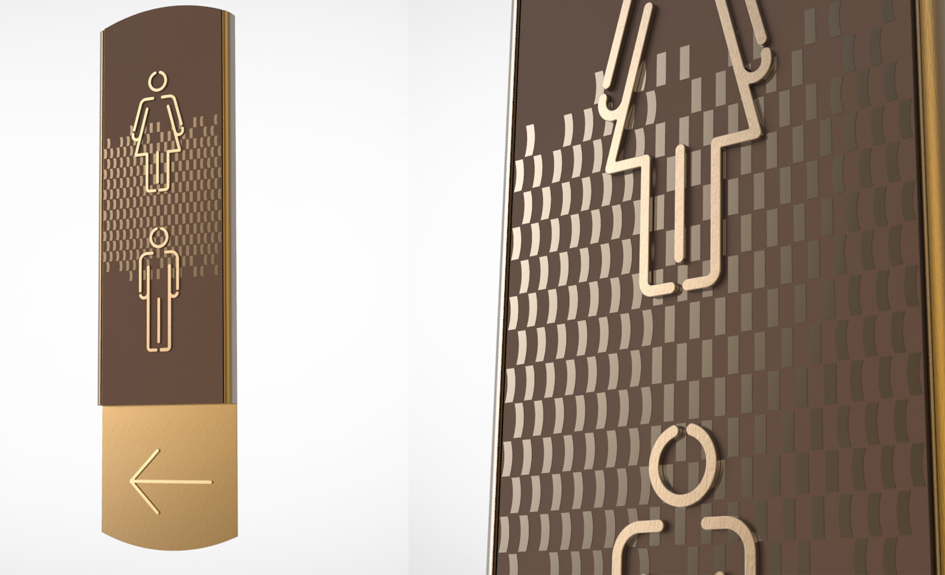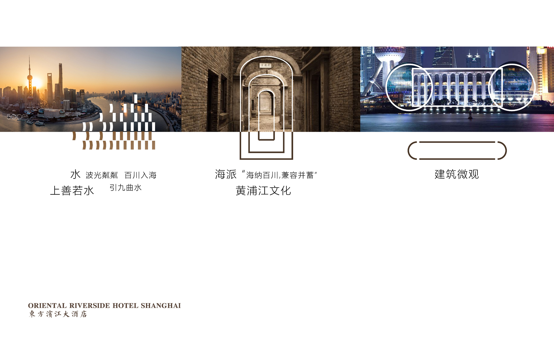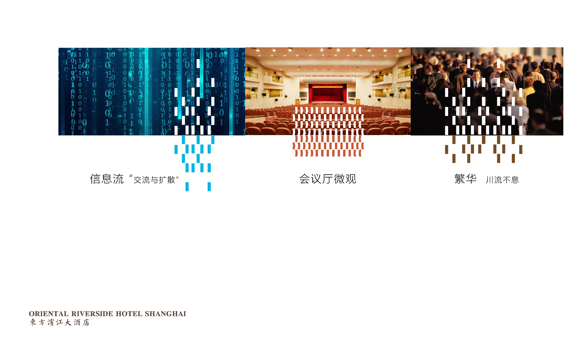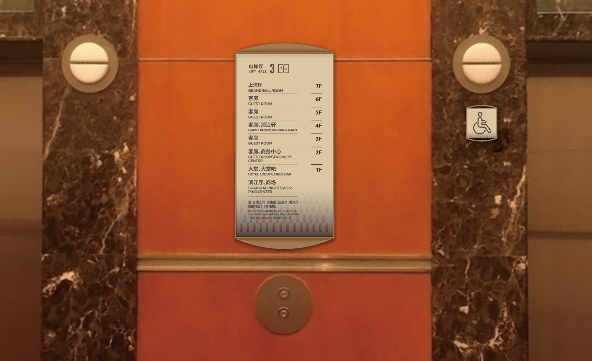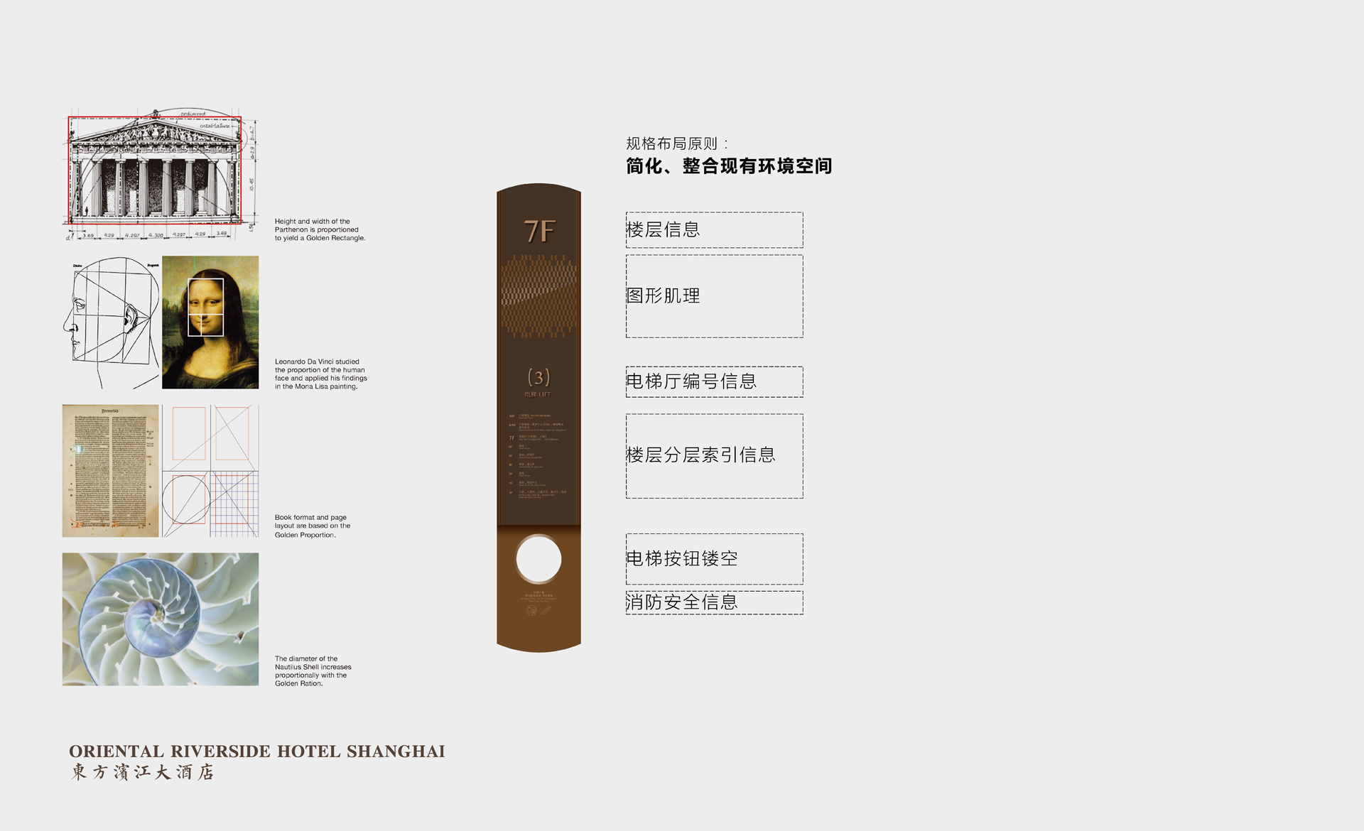原有導(dǎo)視系統(tǒng)在視覺層面和功能層面存在的缺少系統(tǒng)性、美觀性及全局性的問題,不但影響了客戶日常運(yùn)營管理工作,而且影響了其所接待的客人對其整體形象的認(rèn)可度。和與德在充分了解其需求后,提出了相應(yīng)的導(dǎo)視系統(tǒng)提升建議及方案,視覺層面?zhèn)戎乜紤]上海國際會(huì)議中心獨(dú)有的建筑環(huán)境空間特色,結(jié)合聚、散、流,從LOGO中演化輔助圖形,并通過漸變等工藝建議,以凸顯其品質(zhì)感;功能層面?zhèn)戎貜母鳂菍又械墓δ懿季旨案鞣謪^(qū)的關(guān)聯(lián)性出發(fā),系統(tǒng)性地進(jìn)行規(guī)劃布點(diǎn),力求實(shí)現(xiàn)不同人群的導(dǎo)向需求。