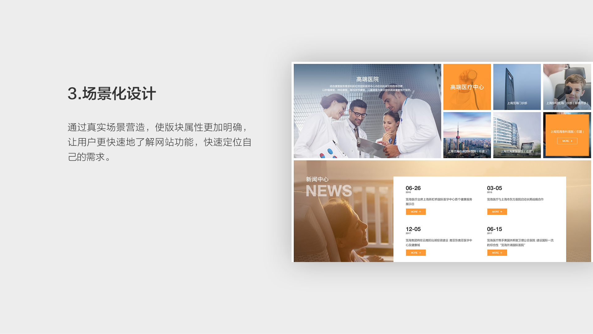 為提升品牌形象,體現(xiàn)國際化和人文關(guān)懷,增強品牌官網(wǎng)視覺體驗,和與德通過對覽海醫(yī)療官網(wǎng)的功能布局、交互設(shè)計、視覺差與時間差,多終端相應(yīng)等進行了全方位的視覺體驗升級。新的官網(wǎng)布局清晰,更加符合品牌調(diào)性。
